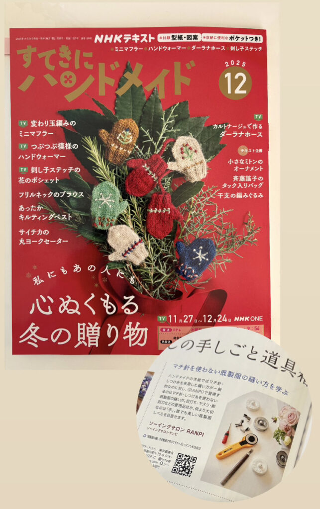 11/20発売の「すてきにハンドメイド」12月号〜わたしの手しごと道具箱〜コーナーに掲載させていただきました。 -