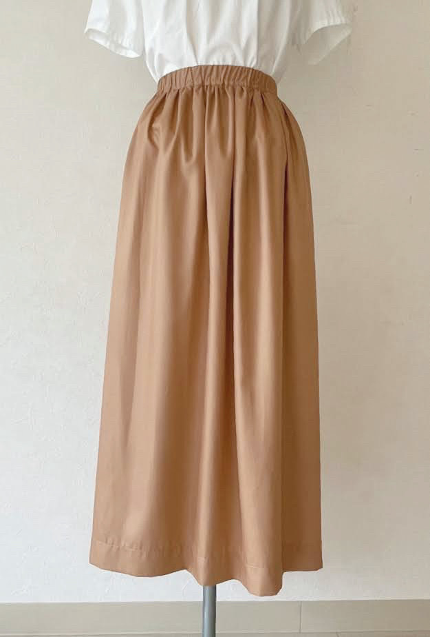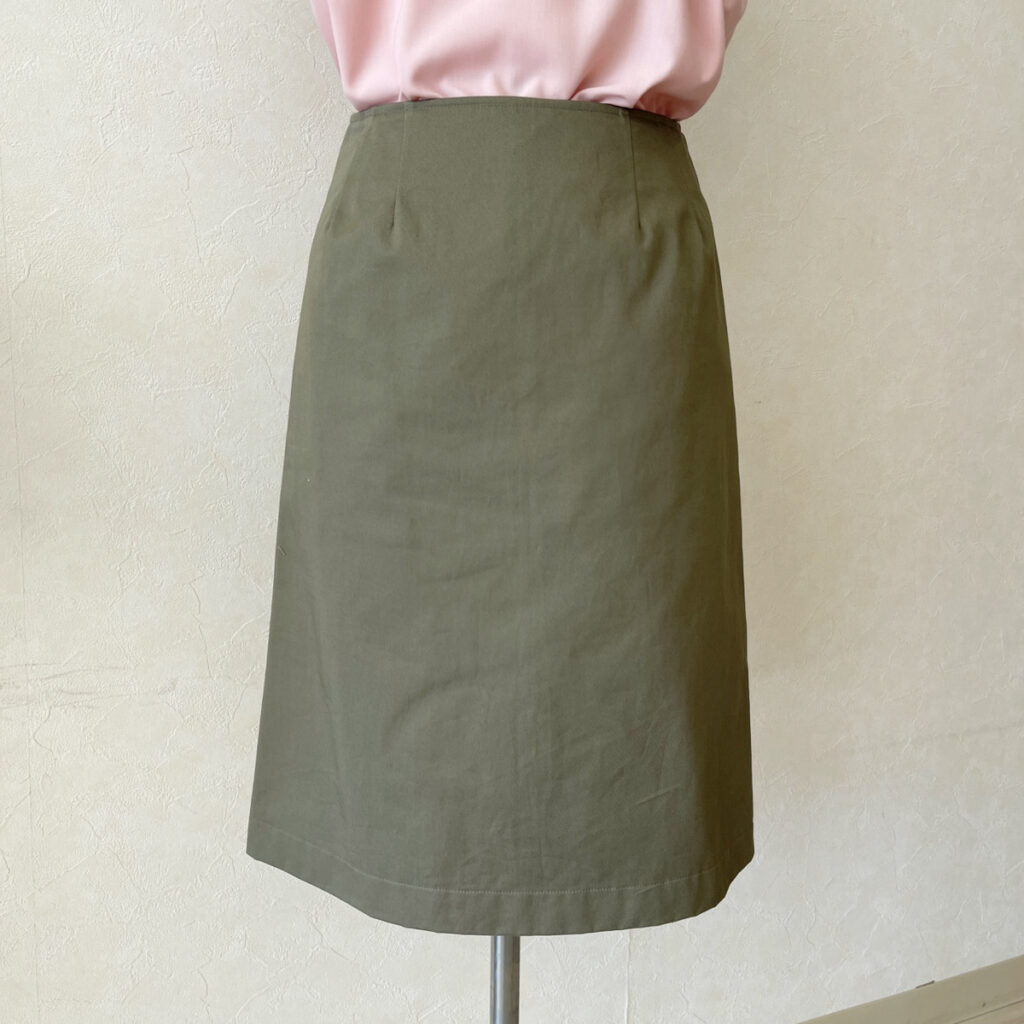 見返し仕立て・ジャストウエストのシンプルな誰にでも似合うデザインです